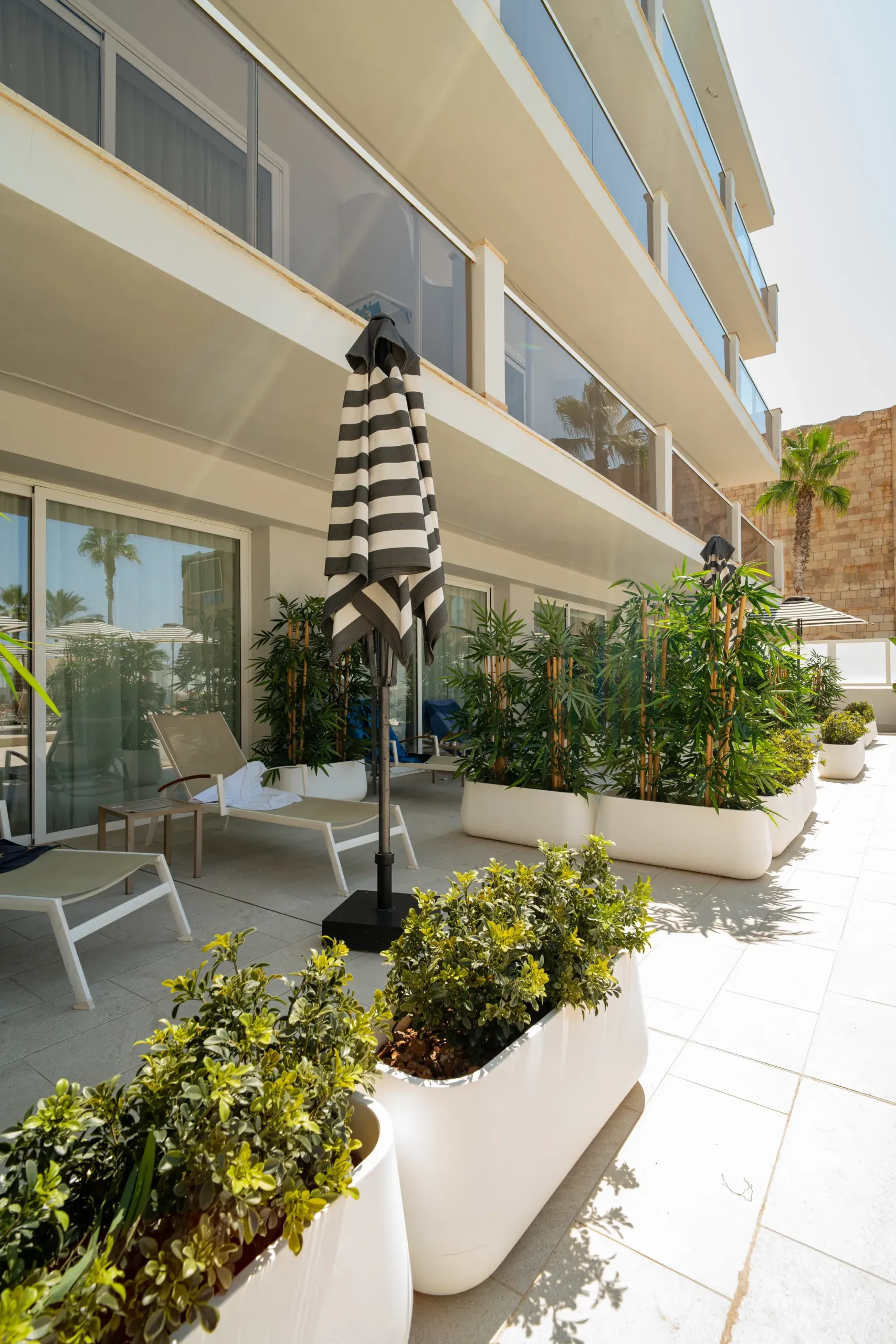 En este proyecto, los conceptos de ligereza visual y conexión con el entorno costero fueron clave. Universal Neptuno se viste con jardines verticales, detalles orgánicos y una paleta armónica que respira mar.